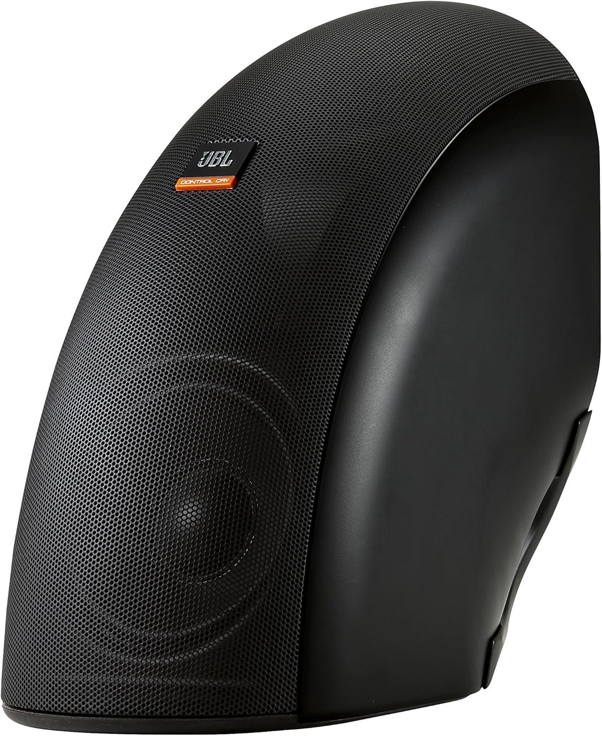 The Control CRV brings high design and versatility to commercial applications such as restaurants, retail stores, lounges, theme bars, music cafes, hotels, boardrooms, boutiques, museums, leisure venues, outdoors, upscale lobbies and other foreground and background music and paging applications that require a fashionable look with superb sound quality.Dual 100 mm (4 in) woofers feature Polyplas cones for durability, large 32 mm (1 1/2 in) voice coils wound on vented aluminum formers for high power handling and dual neodymium magnets for high output with low harmonic distortion. The 19 mm (3/4 in) tweeter features a titanium laminate dome tweeter, a shielded neodymium magnet and Ferrofluid cooling for maximum power handling and reduced thermal compression. A bi-radial waveguide reduces high frequency variations in the frequency response across the listening area. The advanced high-slope crossover network (36 dB per octave high-pass to the tweeter and 18 dB per octave low-pass to the woofers) provides natural midrange sound quality along with smooth pattern coverage in the crossover region.JBL Control CRV speakers are exceedingly versatile, with multiple installation possibilities. The JBL Control CRV speaker can be wall-mounted aimed straight out from the wall, angled down at a 45 deg. aiming axis, mounted spanning the junction of a wall and ceiling, or spanning the junction of a wall and another wall. At a junction, the unique curved shape of the speaker coupl